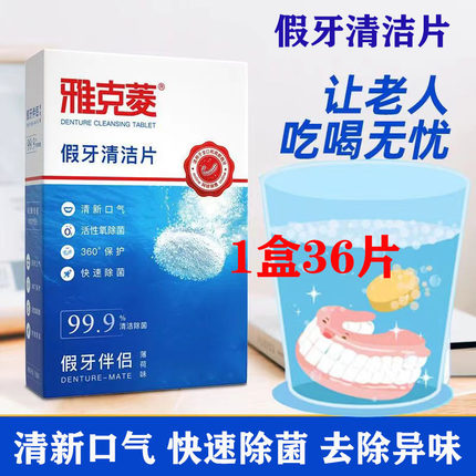 雅克菱假牙清洁片36片义齿清洗剂液老年泡腾片保持器牙套清洁神器