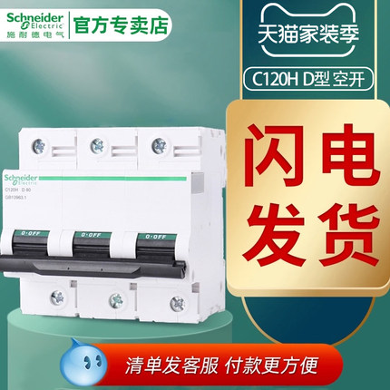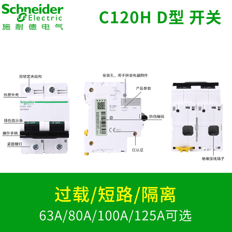 施耐德空气开关C120H断路器1P80A 2P空开100A微断3P无漏电保护