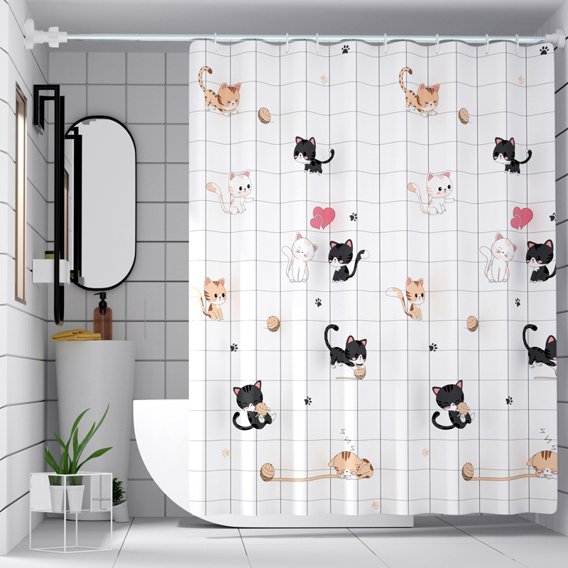 卫生间防霉浴帘浴室窗帘免打孔套装防水布淋浴干湿分离隔断挂帘子