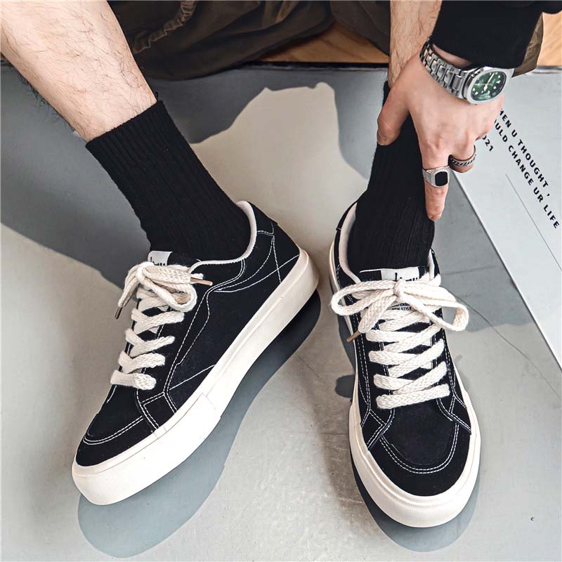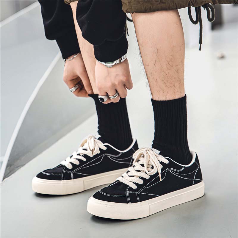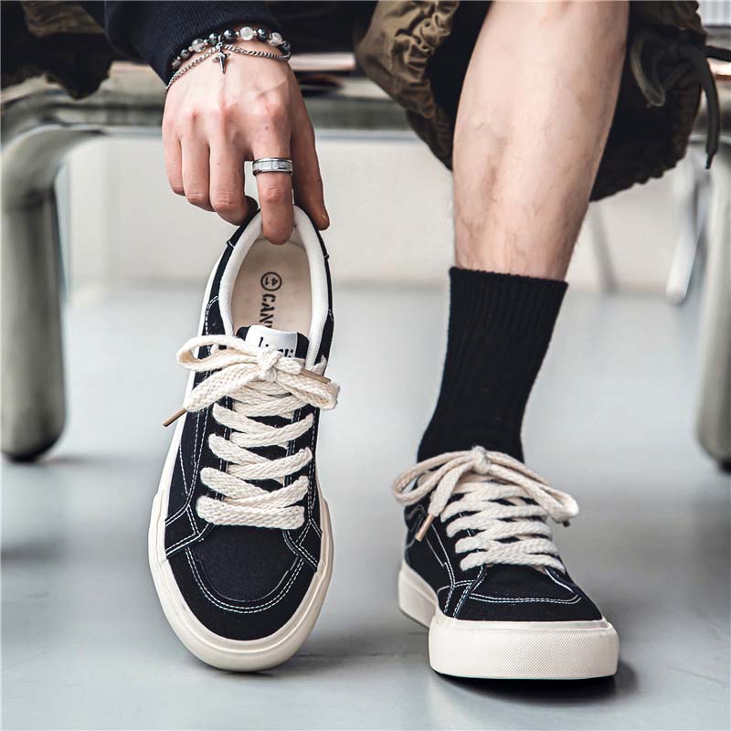 黑色帆布鞋男秋季透气青少年潮流百搭经典板鞋男款软底运动休闲鞋