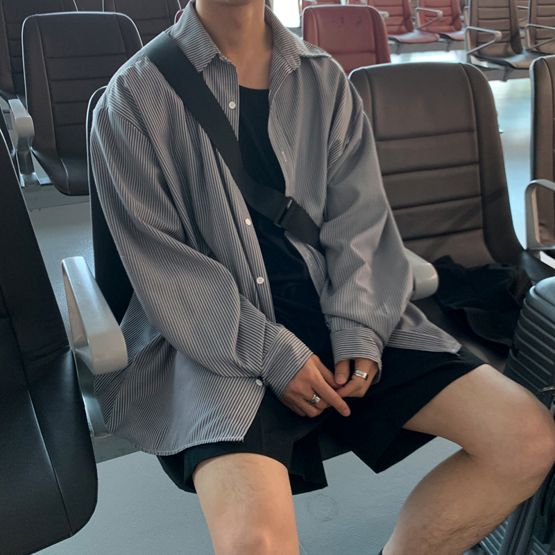 MRCYC蓝色条纹衬衫男长袖秋季新款宽松衬衣日系痞帅休闲百搭外套