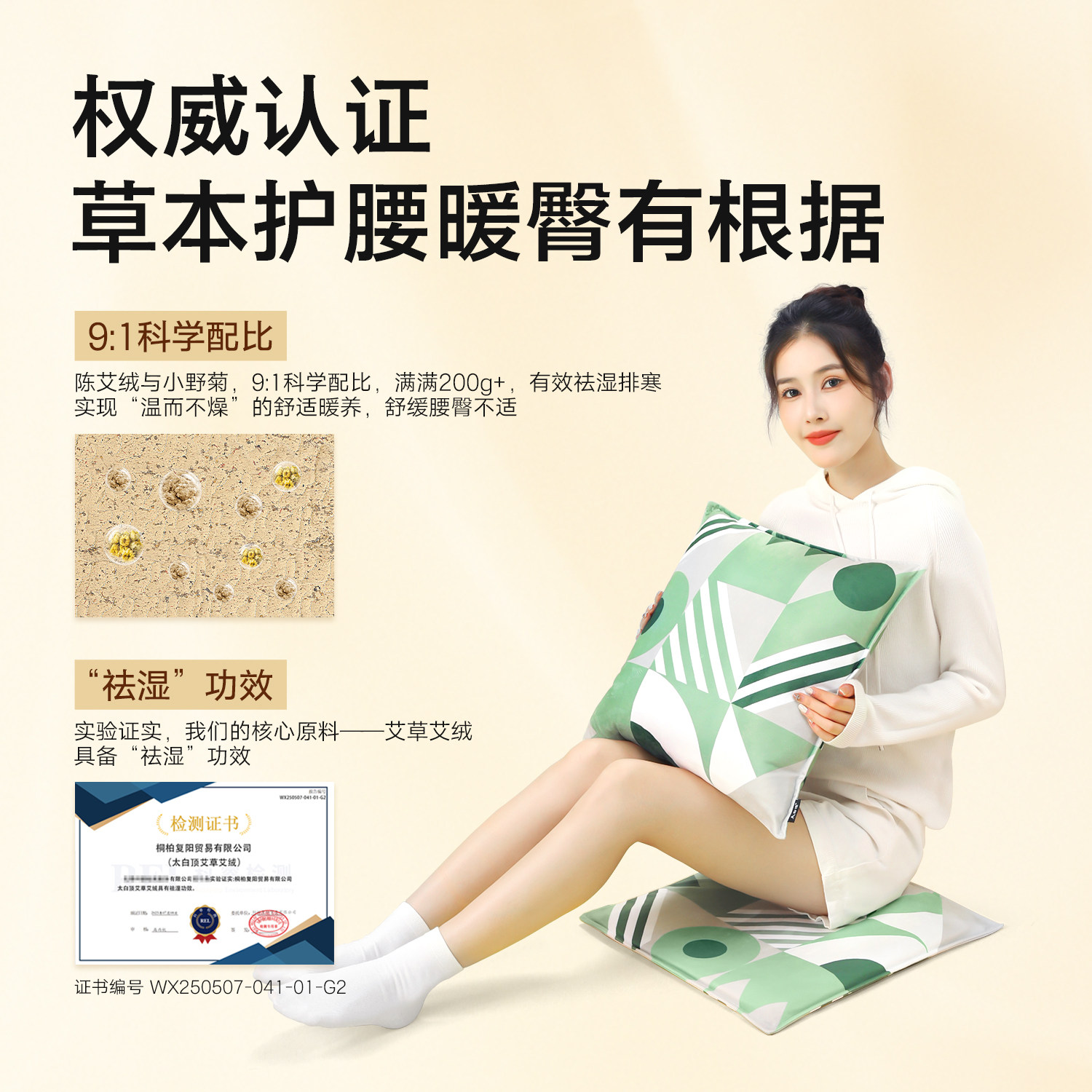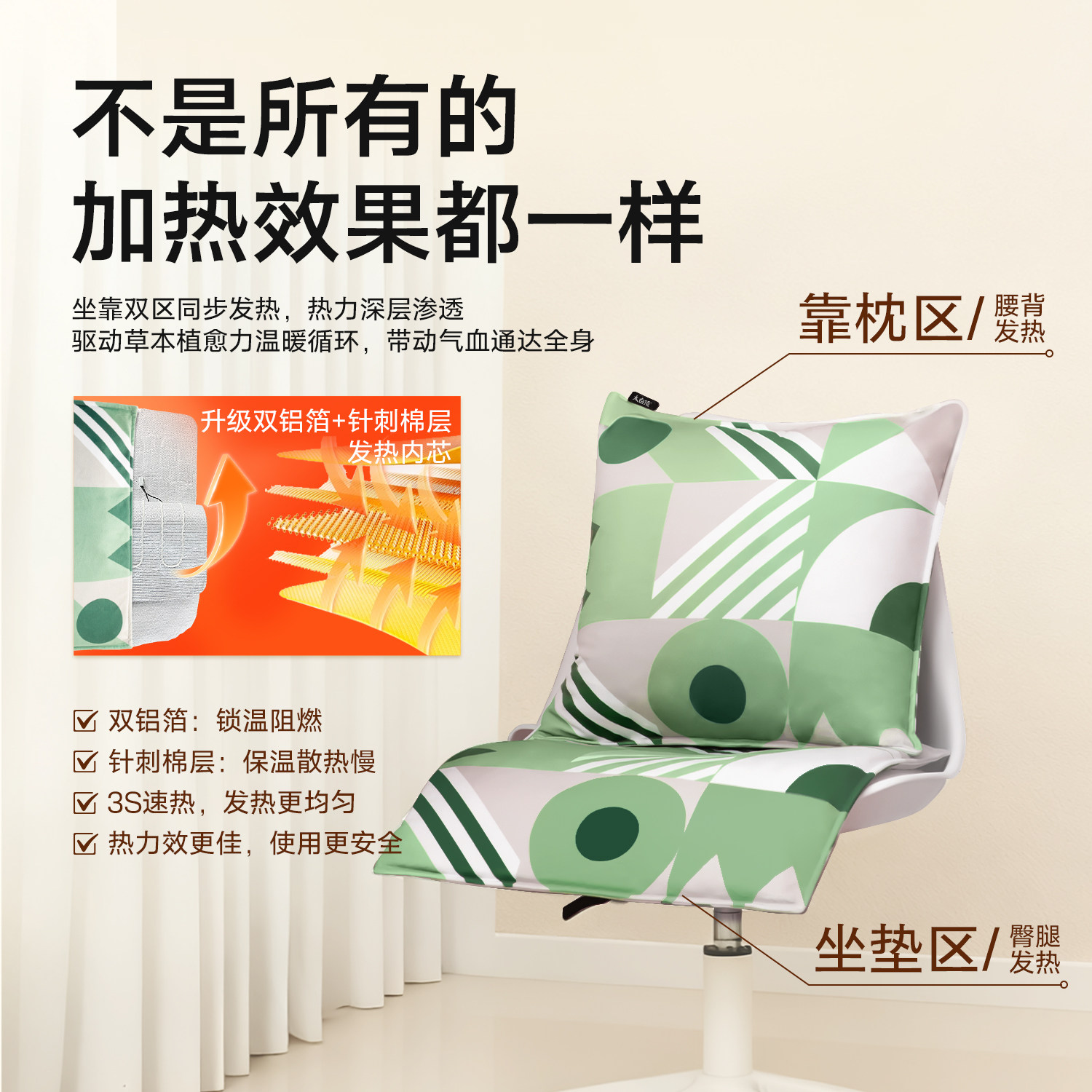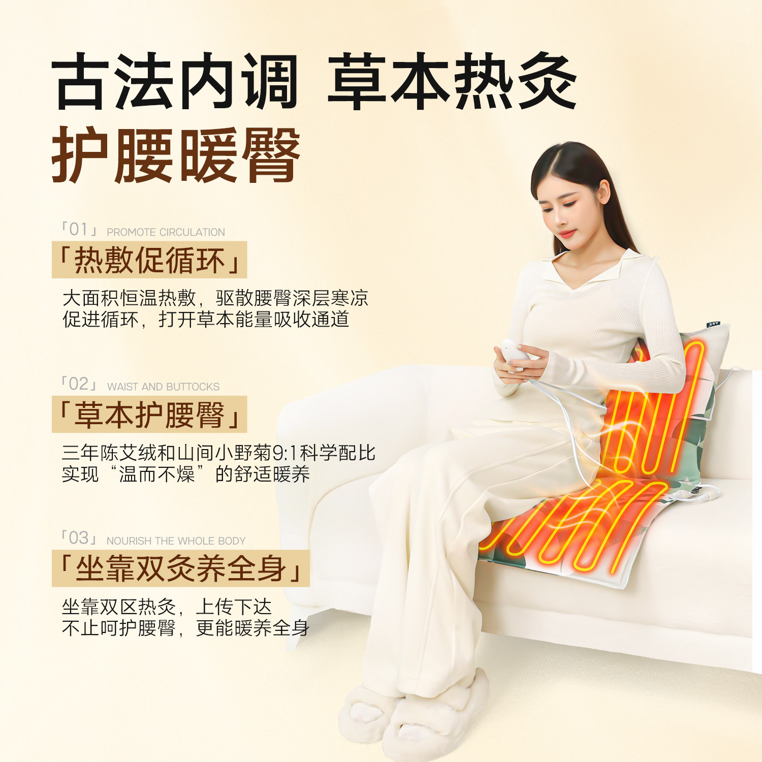 小野菊陈艾绒加热护腰坐垫腰靠枕