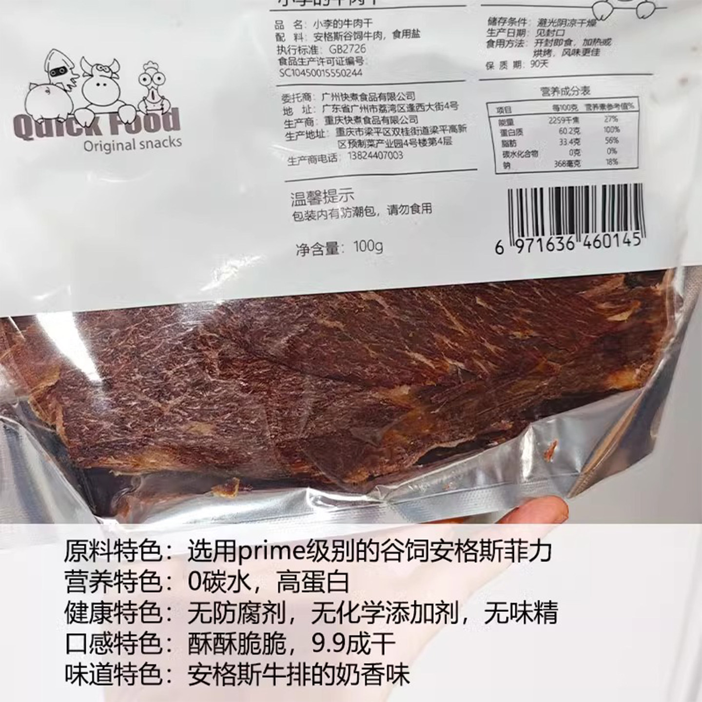 IMOC小李的安格斯谷饲纯牛肉干100g牛脆脆牛肉薄脆片健康营养零食