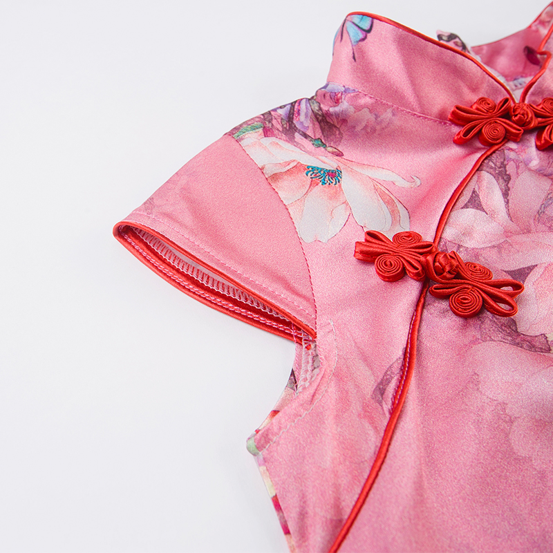女童真丝旗袍儿童汉服女宝宝唐装小女孩中国风童装过年夏季连衣裙