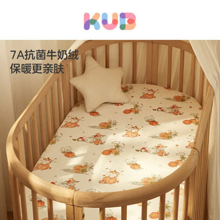 KUB可优比婴儿床笠纯棉床上用品宝宝床罩床单拼接床笠秋冬牛奶绒