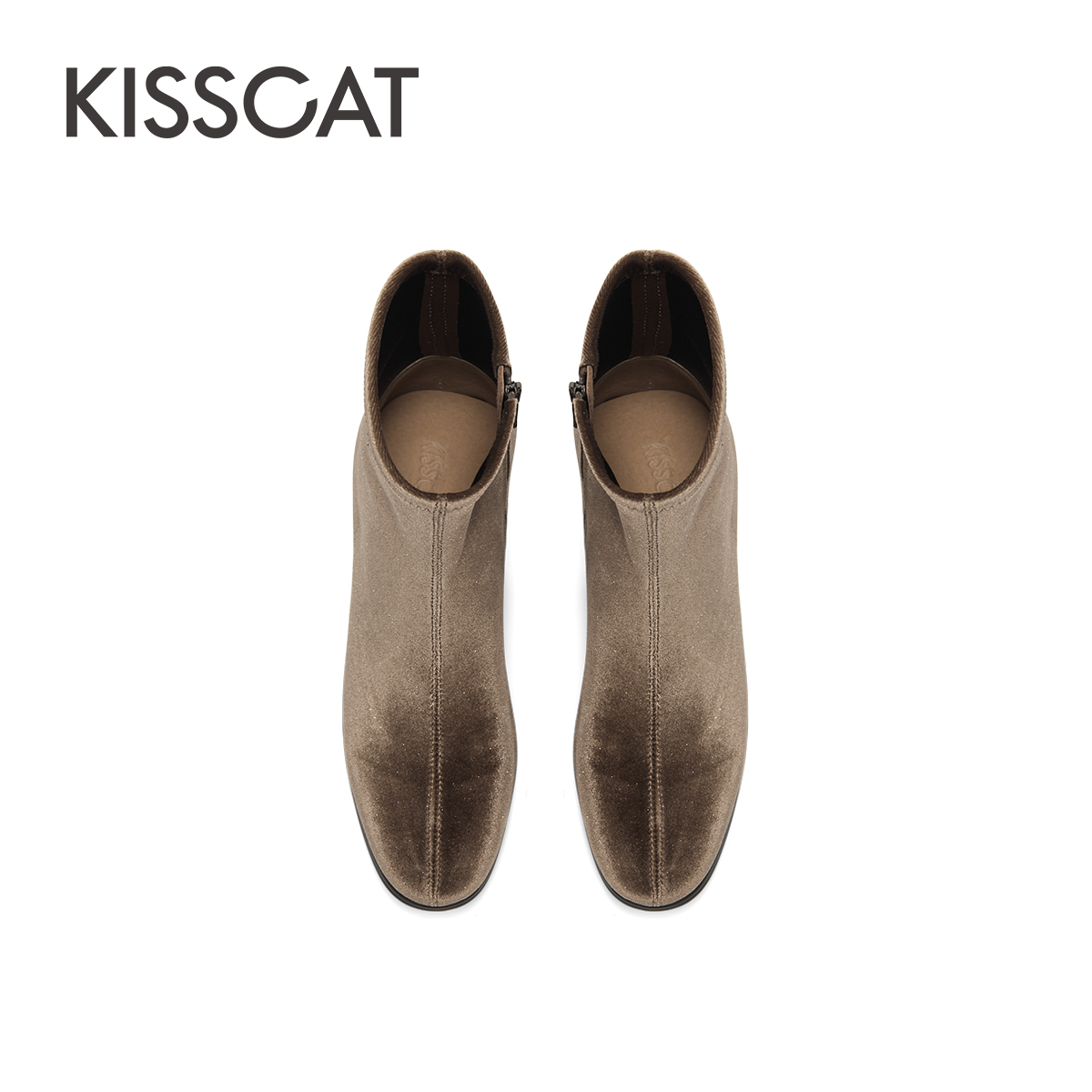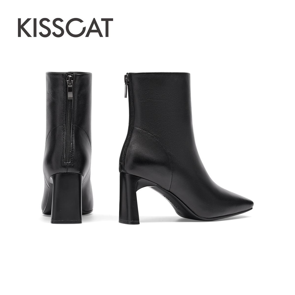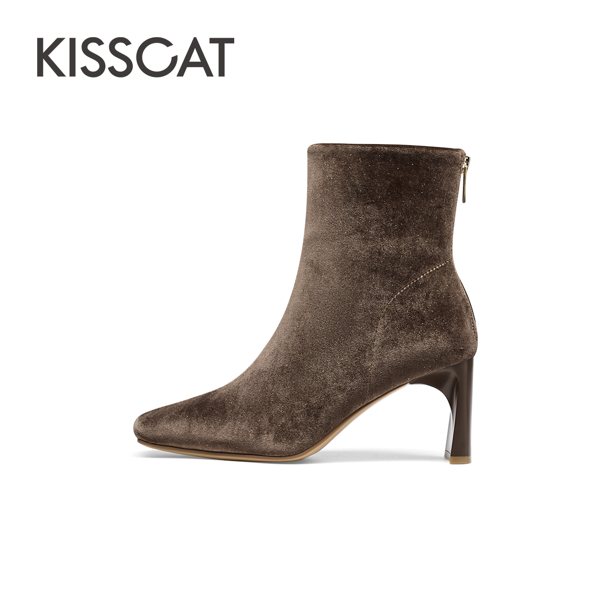 露思/D表姐同款KISSCAT接吻猫[云感肌底靴]真皮弹力瘦瘦靴高跟靴