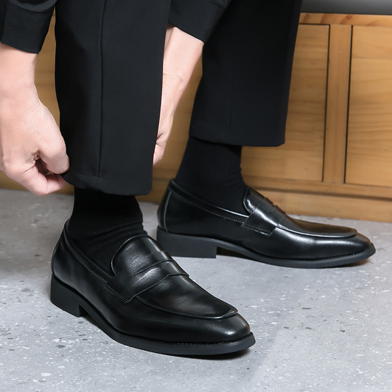 夏季新款豆豆鞋男英伦风一脚蹬懒人乐福鞋商务休闲皮鞋结婚新郎鞋