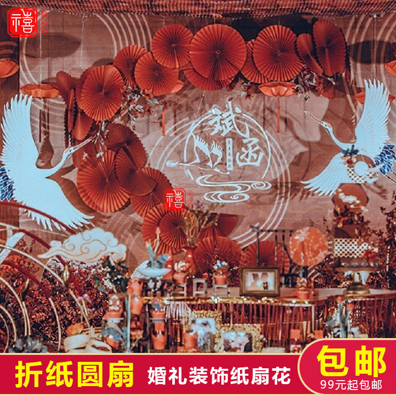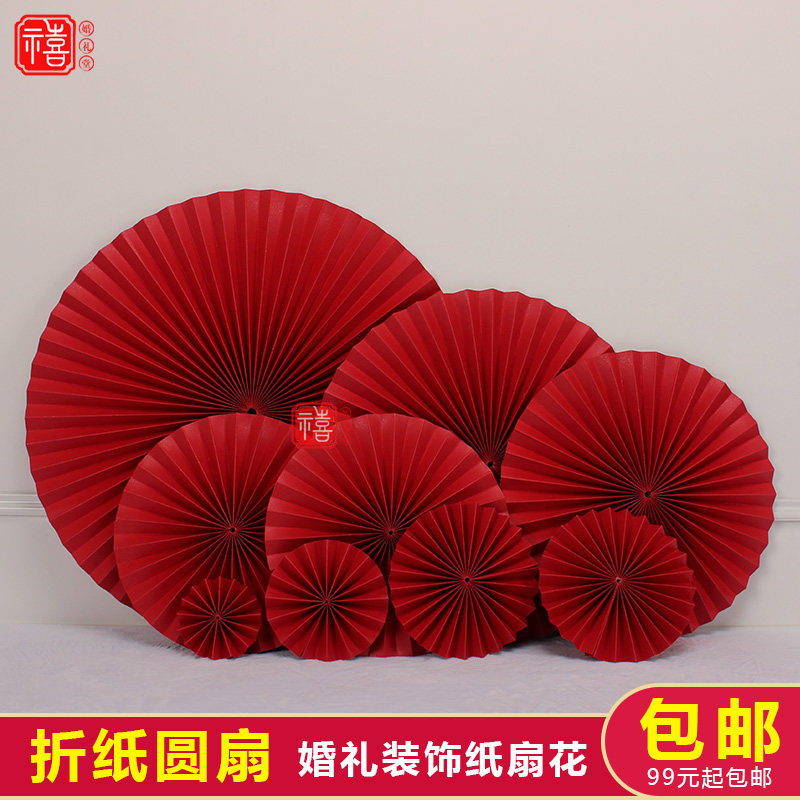 折纸红色装饰中国风婚房婚礼场景布置道具舞台毕业晚会背景墙扇花