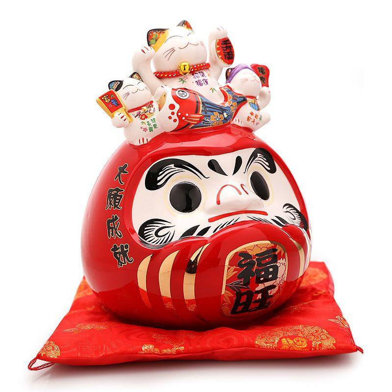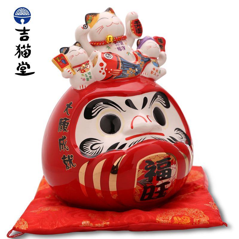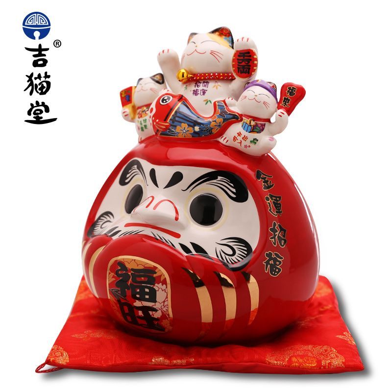吉猫堂大号日式达摩招财猫创意摆件陶瓷存钱储蓄罐开业日料店摆件
