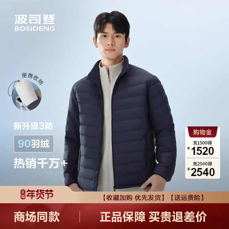 波司登轻薄羽绒服男冬季经典休闲百搭轻便纯色立领短款青年外套男