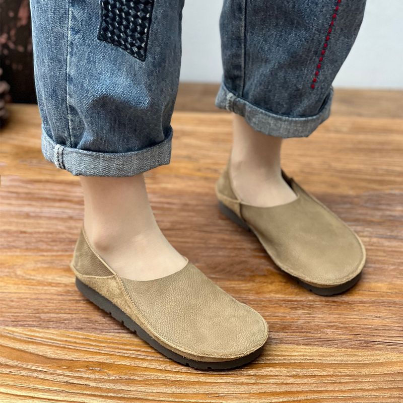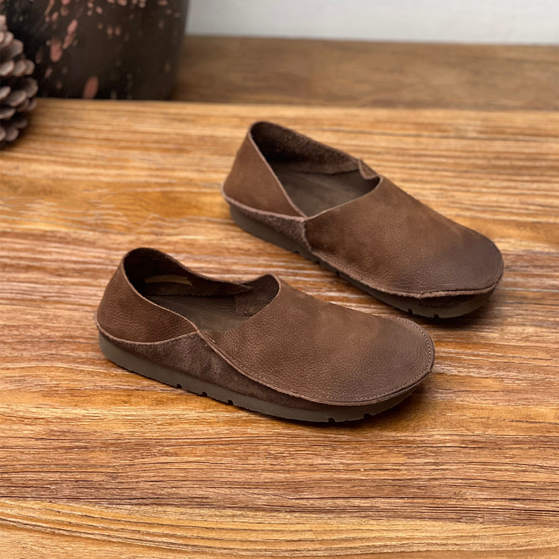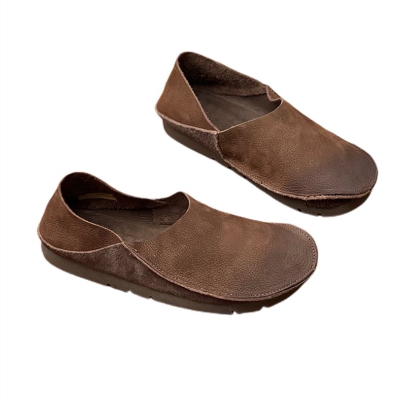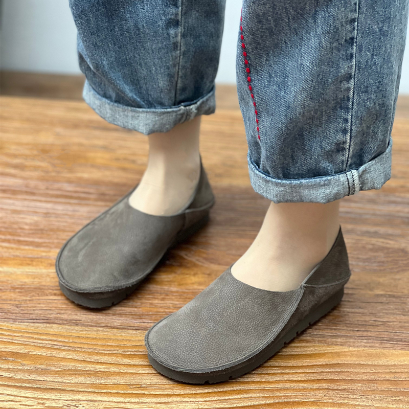 原创手工真皮单鞋2025春夏新款圆头平底懒人奶奶鞋两穿软牛皮女鞋