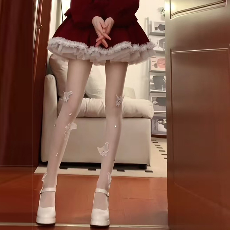 春夏白色丝袜纯欲珍珠袜子女甜美蝴蝶结洛丽塔连裤袜薄款jk美肤袜