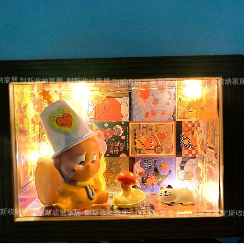 星星人怦然心动展示盒泡泡玛特盲手办造景DIY立体7寸中空相框收纳