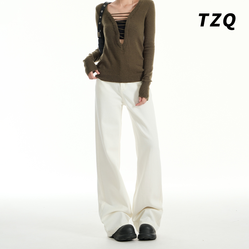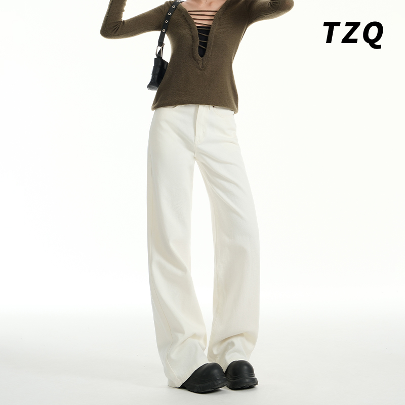 高腰白色窄版阔腿牛仔裤女2025夏季薄款百搭宽松显瘦垂感直筒裤子