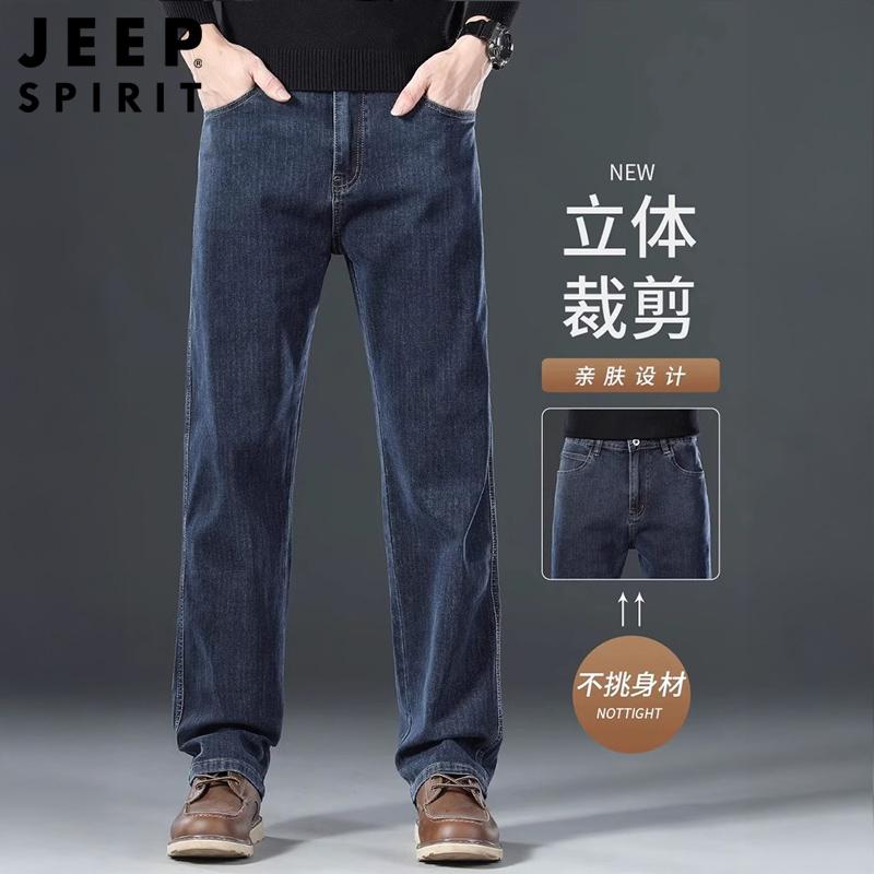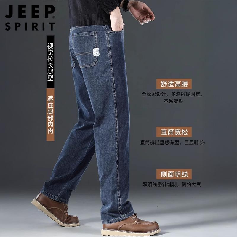 JEEP高端牛仔裤2025新款春秋宽松直筒大码中年爸爸男士休闲长裤子