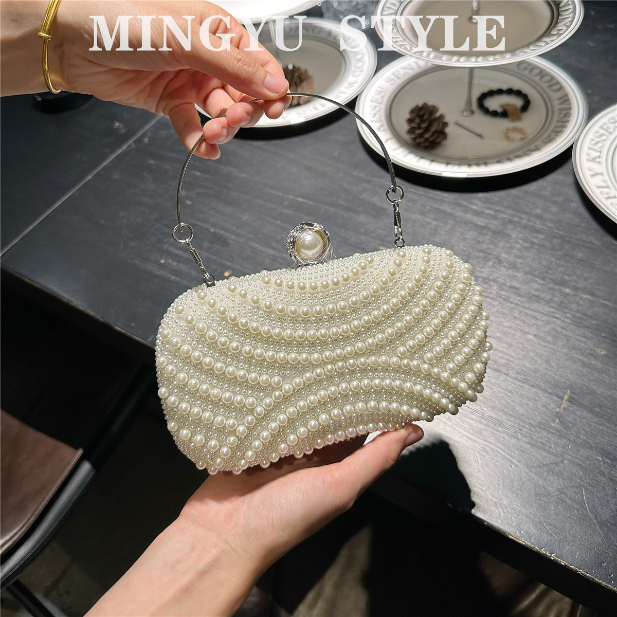 2025新款珍珠包旗袍手提包斜挎包女包复古汉服串珠包名媛礼服包