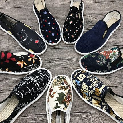 老北京花布鞋男牛筋底休闲防滑透气工作鞋一脚蹬西山手工布鞋防臭