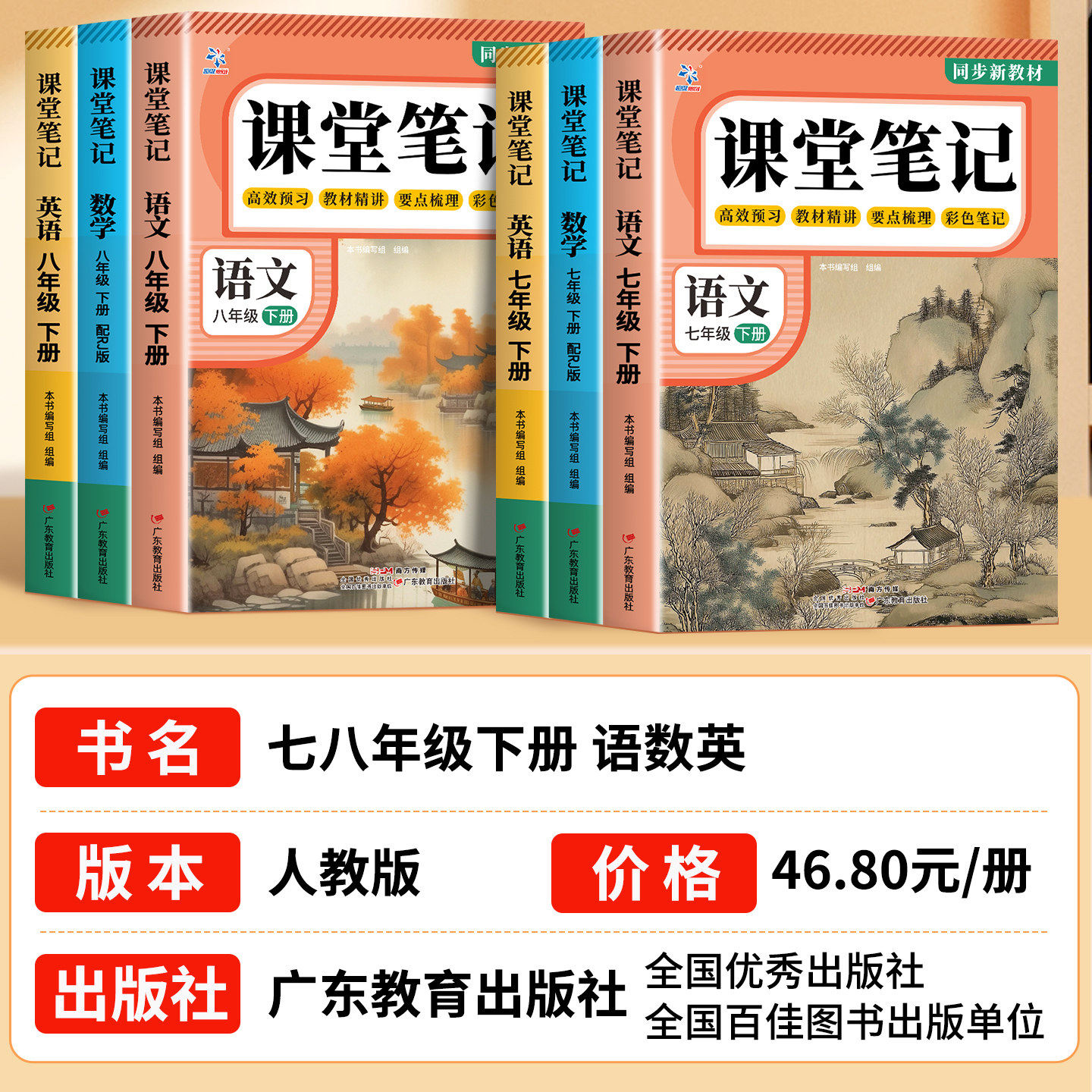 2026新版 课堂笔记七年级下册八年级语文数学英语人教版初中教材全解详解初一二上册黄冈学霸随堂笔记教辅同步课本讲解中学生