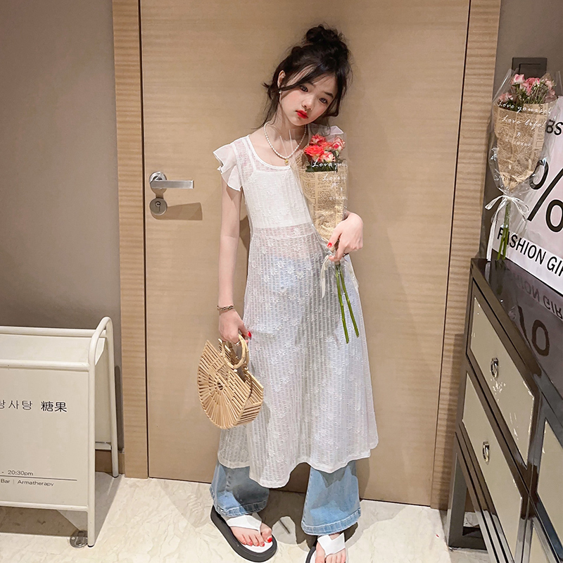 女童连衣裙夏款2024洋气女孩蕾丝公主裙夏季网红薄款裙子两件