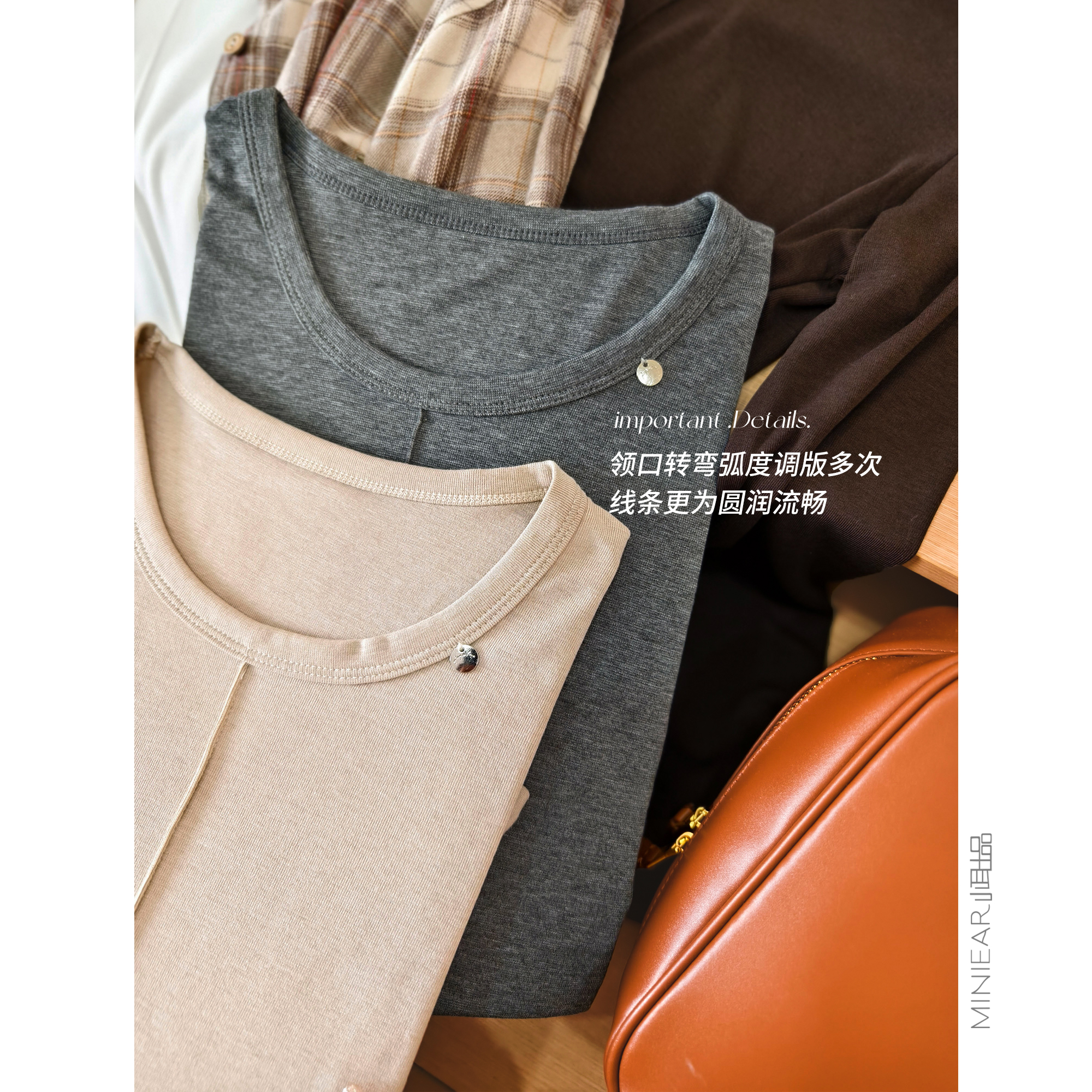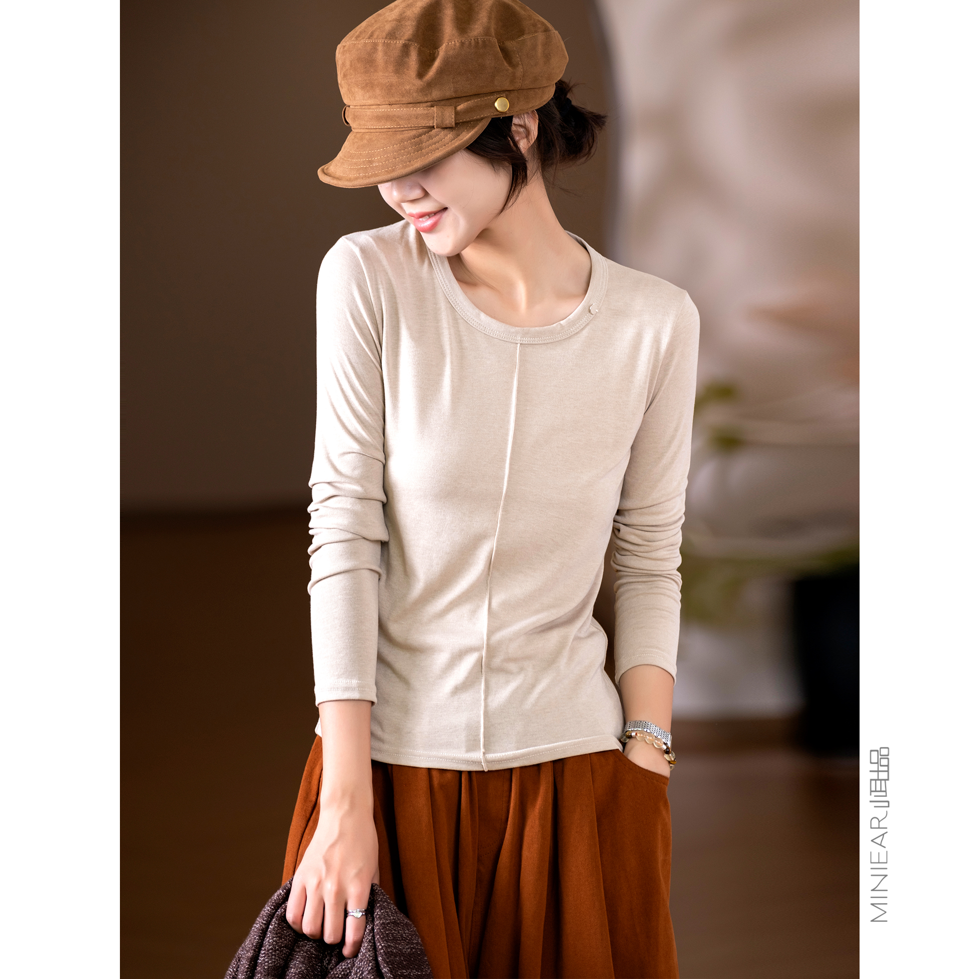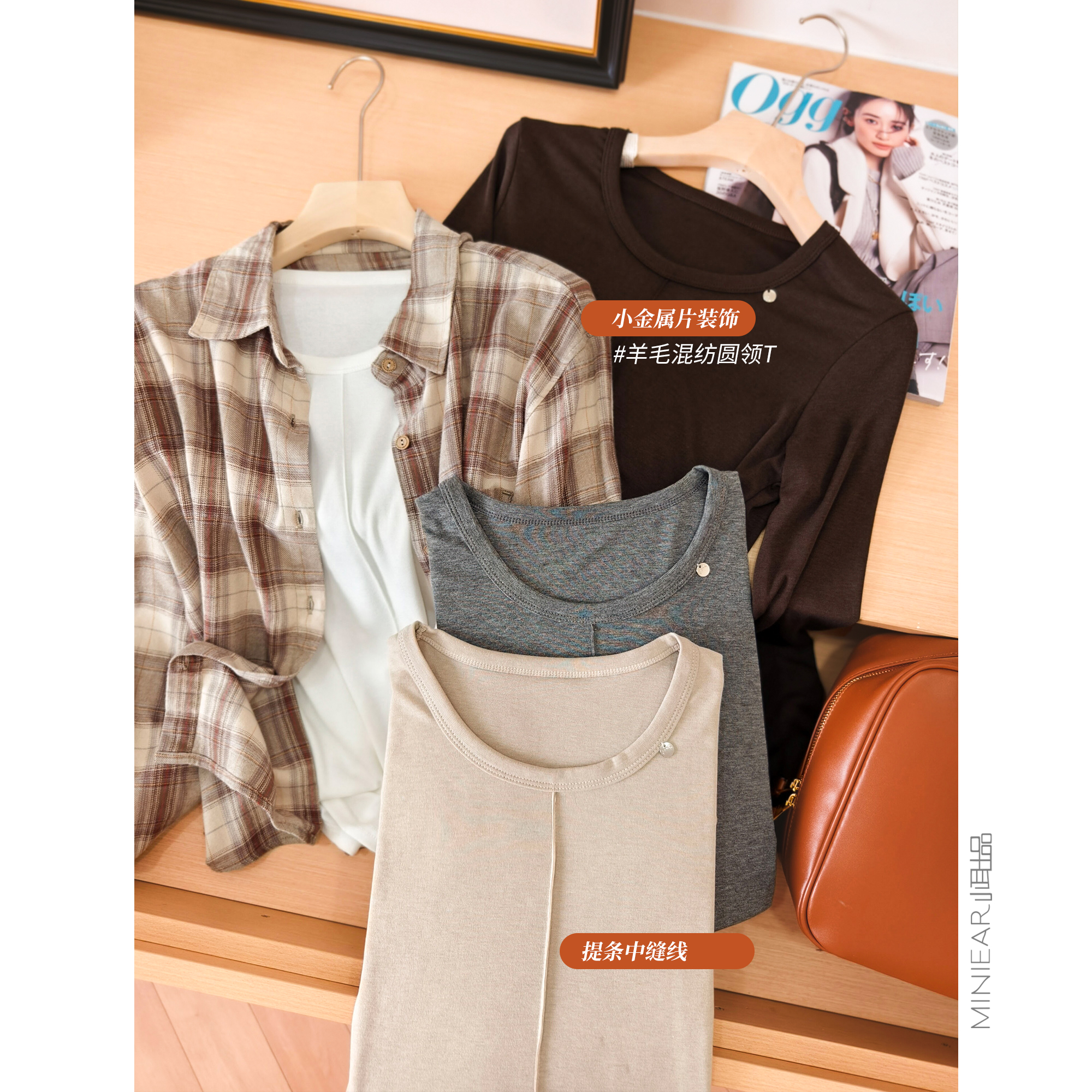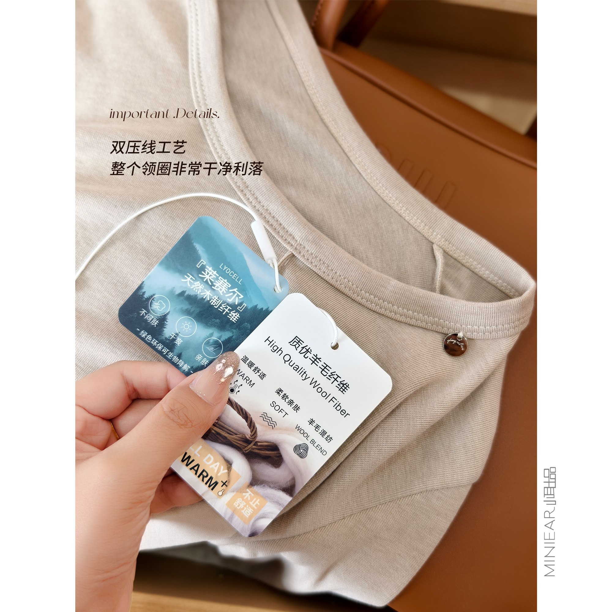 小耳出品 羊毛+莱赛尔/双圈领口/正肩版型 百搭修身中缝线上衣女