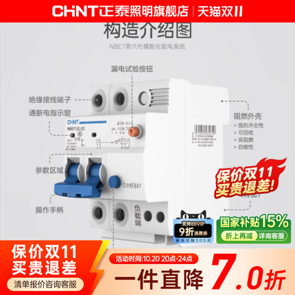 正泰空气开关NBE7家用2P漏保断路器63A总空开空调电闸带漏电保护