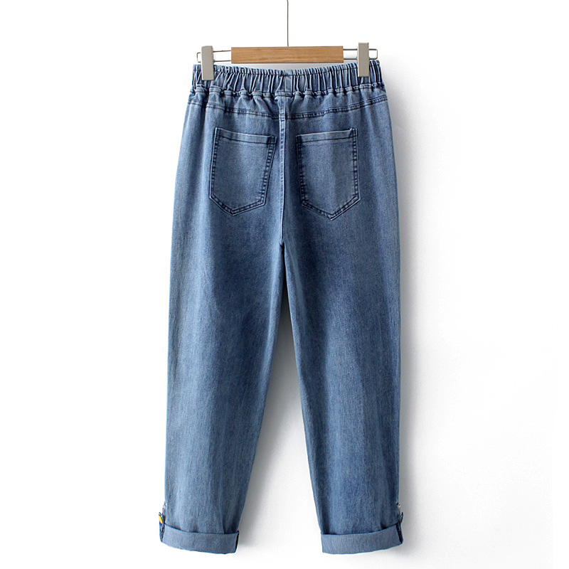 胖妈妈装牛仔裤子2021年春秋装新款中老年宽松加肥加大码老爹裤女