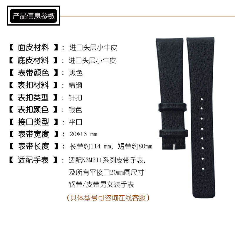 代用CK手表带真皮K3M211/K3M221/K3M231黑色棕色头层牛皮表带男女