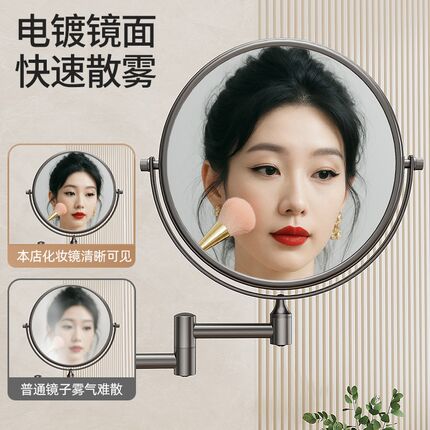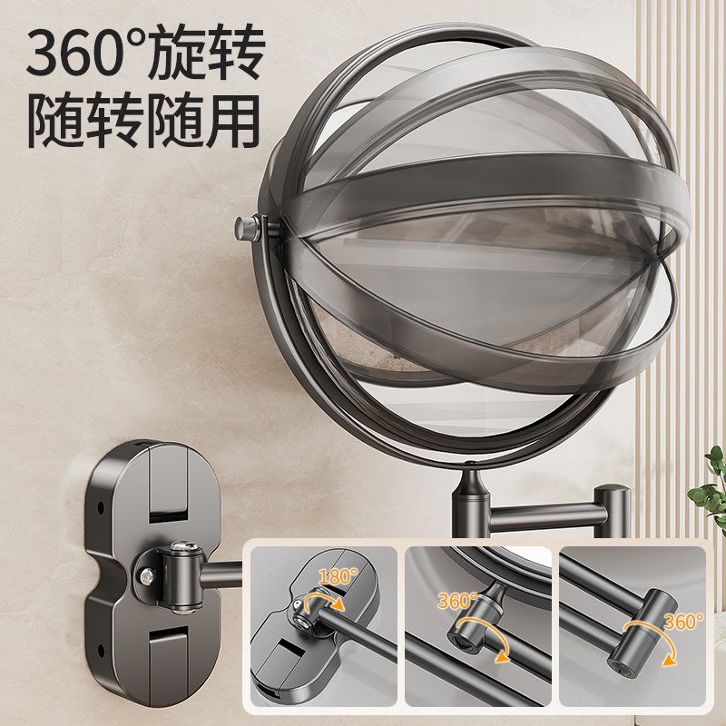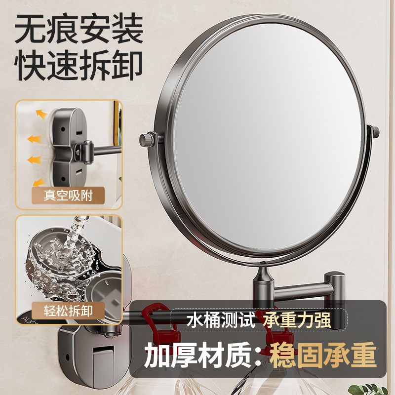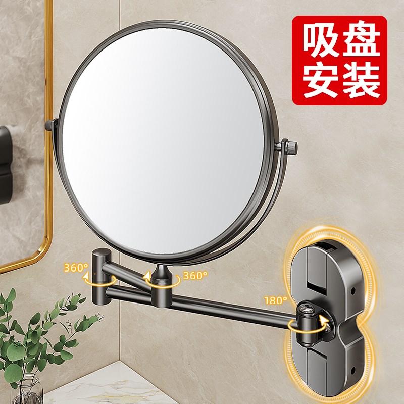 吸盘化妆镜化妆室壁挂式免打孔浴室旋转高清放大伸缩折叠化妆镜子