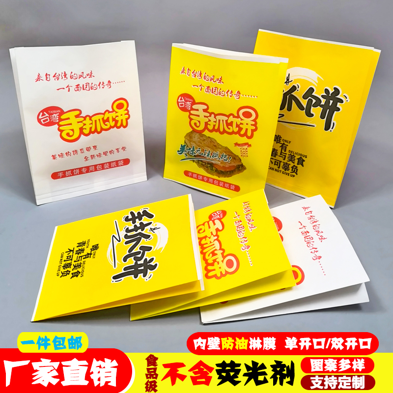台湾手抓饼纸袋定做食品级防油纸袋食品包装纸袋手抓饼袋一件包邮