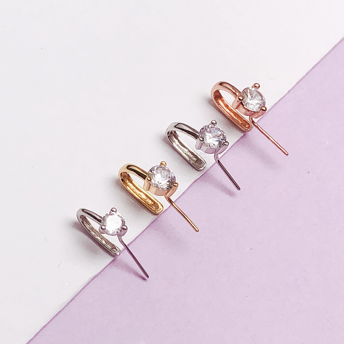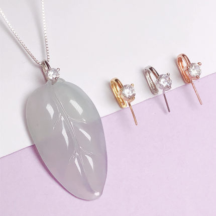 s925纯银吊坠扣子镀18k白金玫瑰金金色水晶玉坠翡翠夹扣瓜子扣头