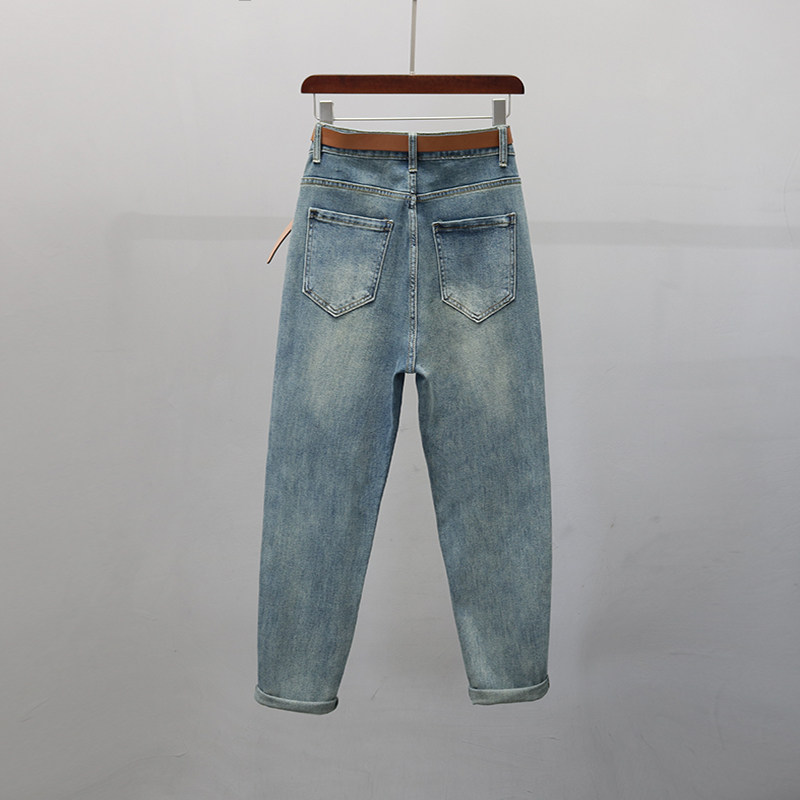 2026年春季新款高腰老爹牛仔裤女欧货宽松显瘦时尚休闲九分哈伦裤
