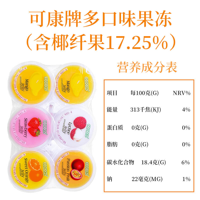 【知品家】马来西亚进口可康cocon椰纤果荔枝百香果味多口味果冻