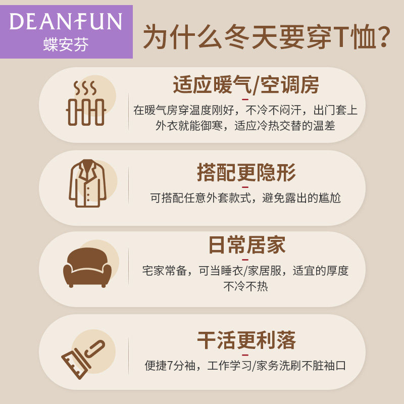 蝶安芬七分袖秋衣女T恤保暖上衣