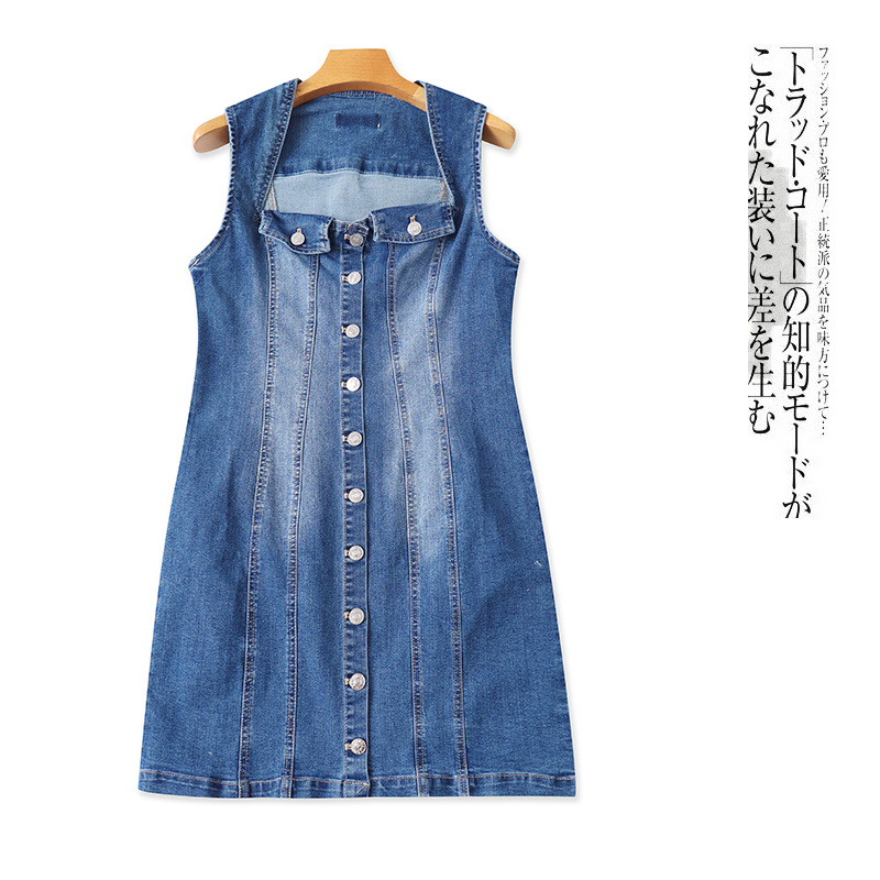 牛仔无袖连衣裙 夏秋新款外贸女装时尚法式领单排扣显瘦中裙31659