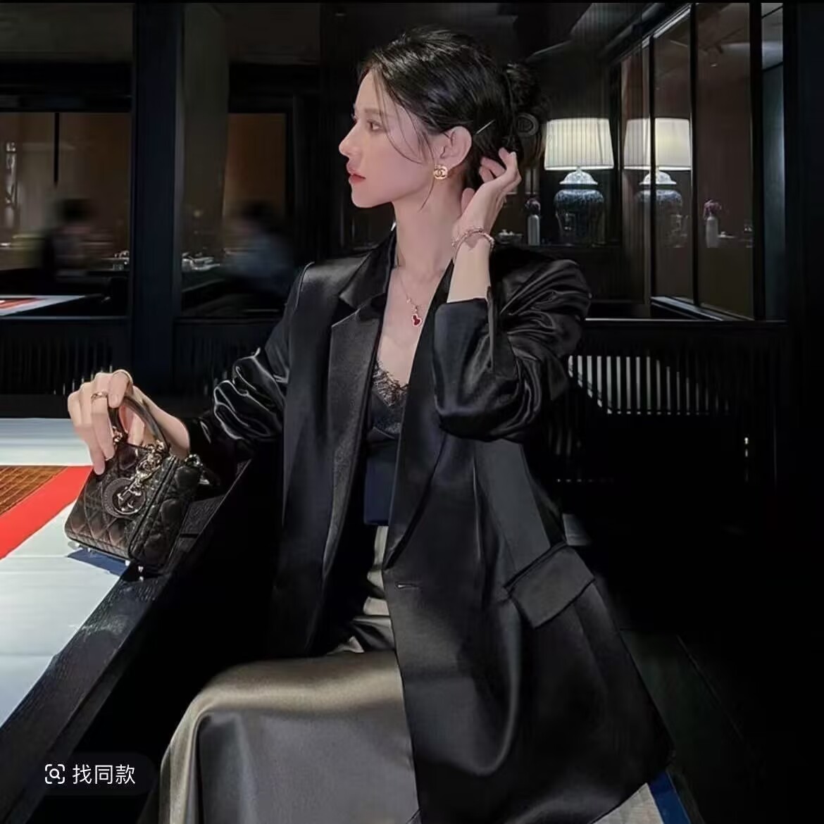 高级感白色醋酸缎面西装外套女2025春秋新款韩版宽松气质西服上衣
