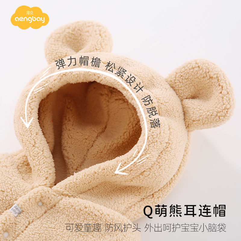 Aengbay宝宝棉服冬装加厚保暖新生儿抱衣连帽连体衣婴儿外出服冬