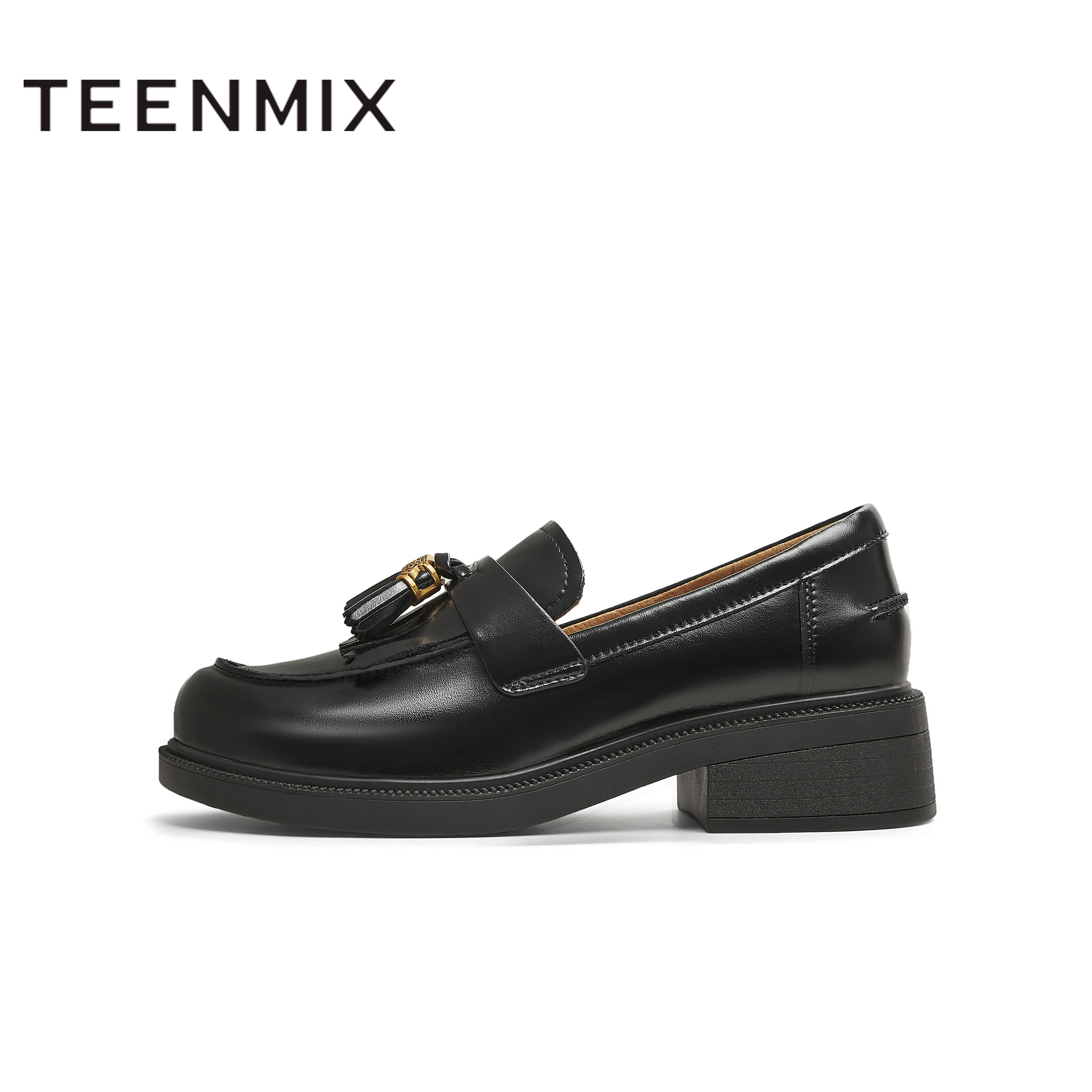 天美意春新款商场同款流苏乐福鞋女皮单鞋CNG19CA5