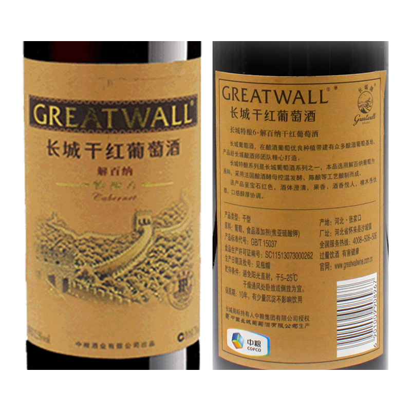 中粮长城特酿解百纳圆筒礼盒干红葡萄酒红酒6瓶正品送礼长辈
