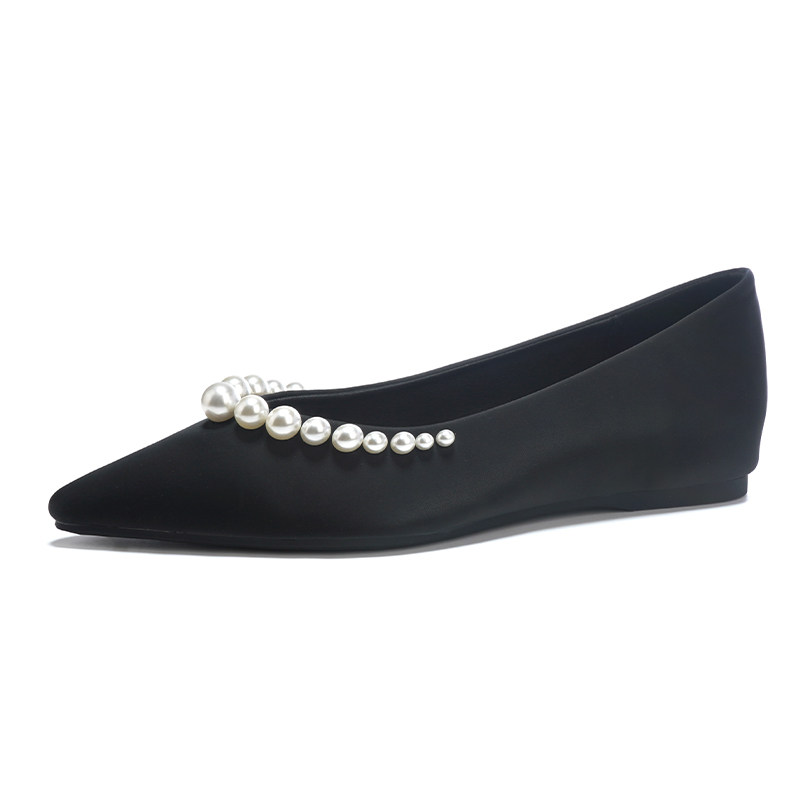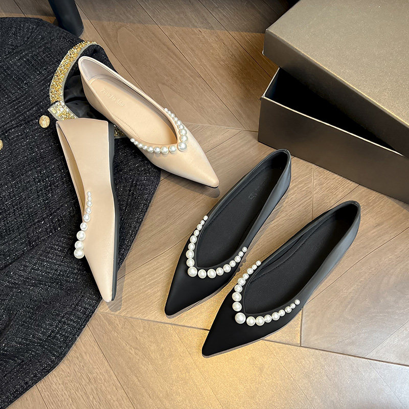 现货秒发内增高珍珠尖头单鞋