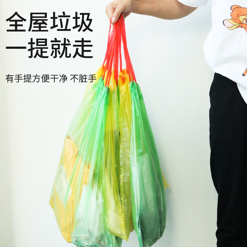 索邦垃圾袋抽绳式一次性家用厨房自动收口加厚手提大号打包塑料袋