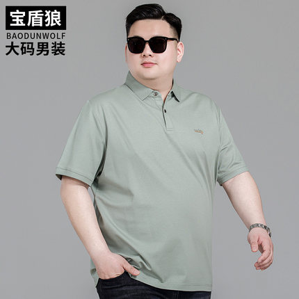 加肥加大男装夏季薄款长绒棉短袖POLO衫大码宽松翻领莱赛尔棉T恤