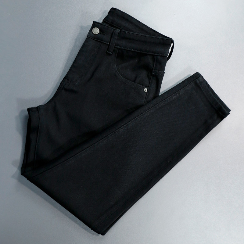 轻奢纯黑色九分牛仔裤男士新款四面弹力莱赛尔潮流修身百搭小脚裤