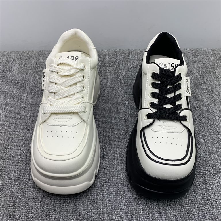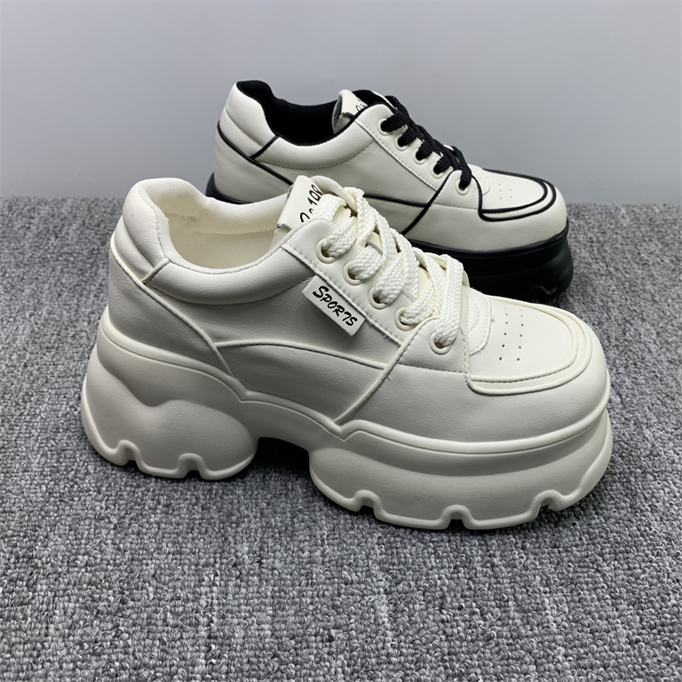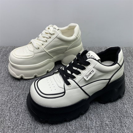 断码处理真皮松糕摇摇小白鞋女2025春季新款厚底轻便小个子运动鞋