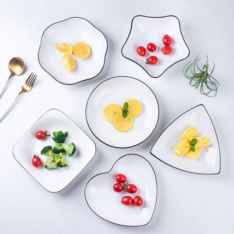 北欧简约西餐盘菜盘鱼盘方形心形家用陶瓷餐具异形菜盘组合水果盘