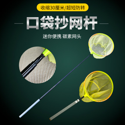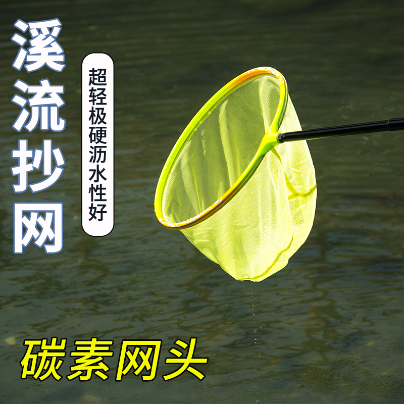 超轻碳素网头可伸缩溪流口袋抄网杆迷你路亚小网钓鱼抄网钓鱼神器