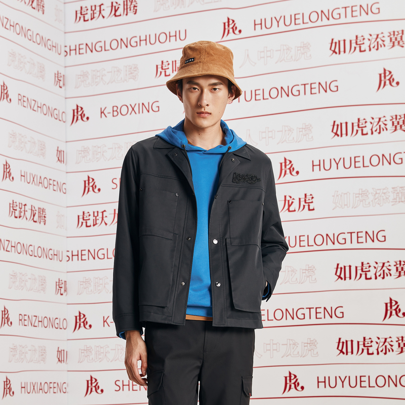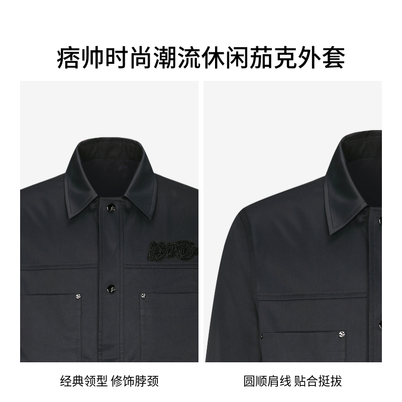 劲霸男装男士夹克春秋字母翻领黑色休闲痞帅时尚潮流茄克外套上衣
