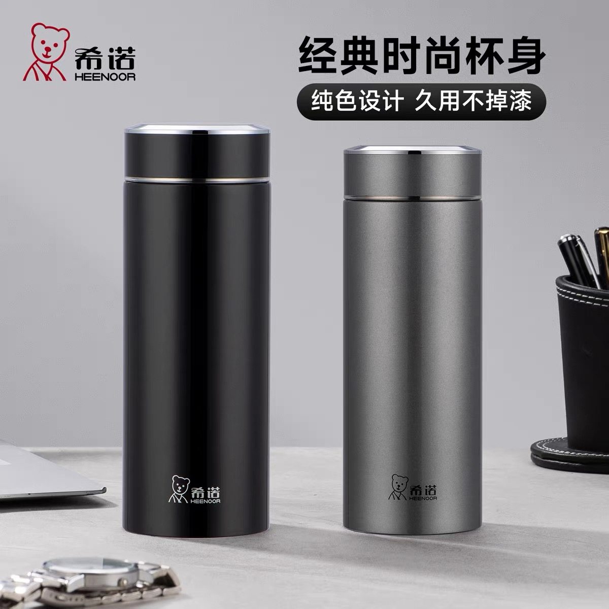 希诺保温杯316L不锈钢内胆男女便携密封防漏高档商务水杯礼盒装