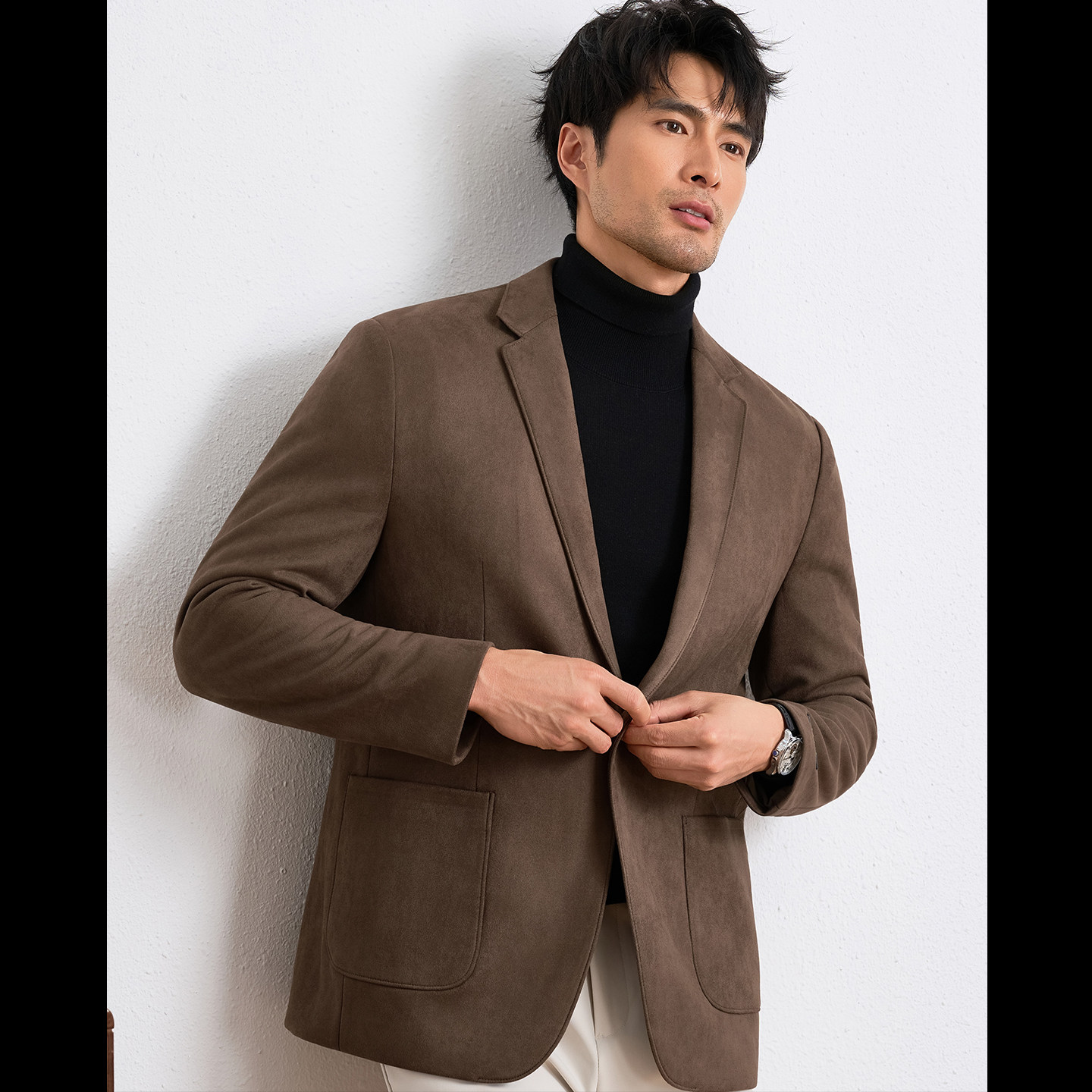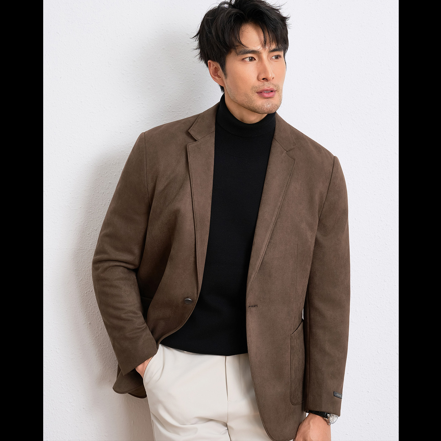 纳特尤尼仿麂皮绒男士单西商务休闲西服中青年秋冬季通勤西装外套