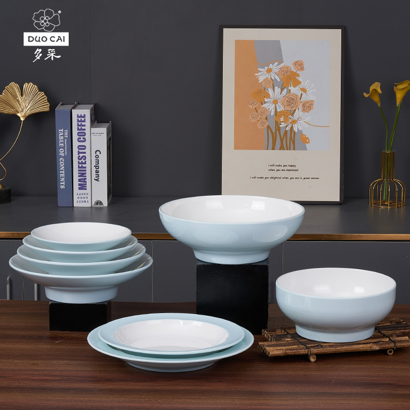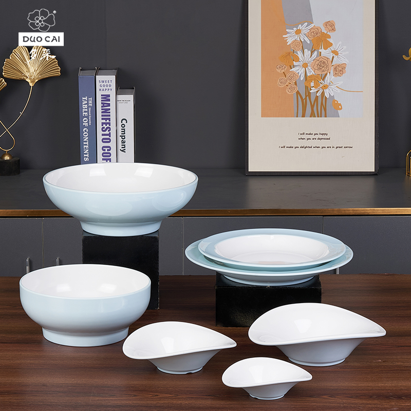 多采春早仿瓷密胺碗圆形盘小吃碟4件套餐具纯色中式简约商用家用