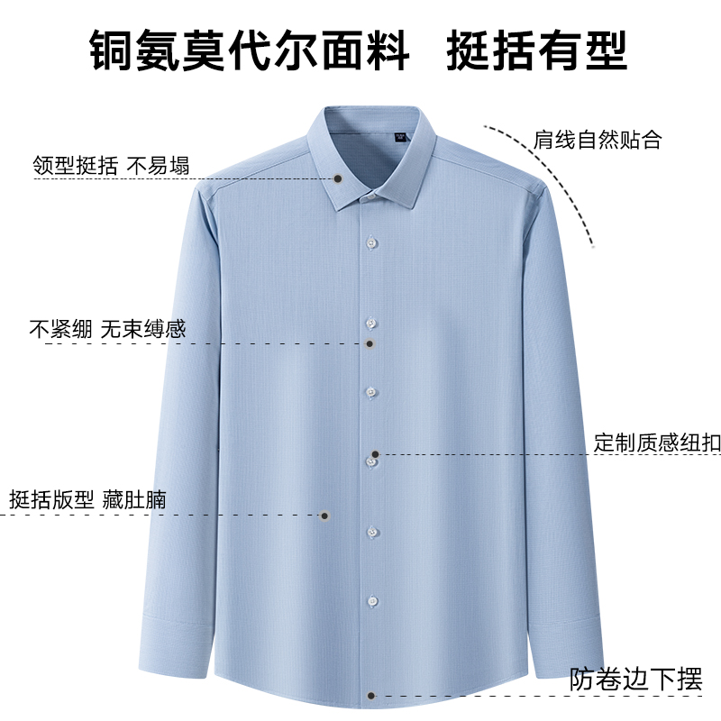 恒源祥彩羊衬衫男士长袖铜氨莫代尔商务休闲免烫中年浅蓝色衬衣秋